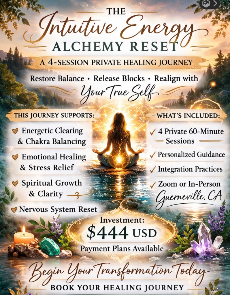 Intuitive Energy Alchemy offers holistic healing, energy healing, intuitive readings, sound healing, and spiritual coaching in Guerneville, Sonoma County, and online via Zoom. Services support emotional healing, chakra balancing, stress relief, and mind-body-spirit wellness.