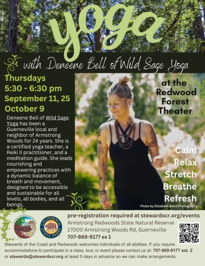 Last chance for yoga in the redwoods with sound bath is Thursday, October 9th