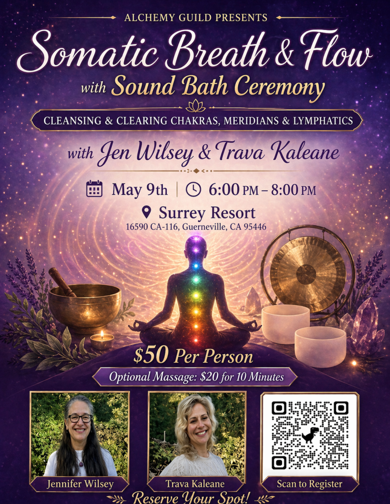 🌿 May 9th | Somatic Breath & Flow with Sound Bath Ceremony | 6–8 PM at Surrey Resort in Guerneville.